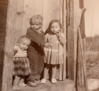 Mom, Dad and I arrived (I don't remember if my sisters came, again, not in my memory). Mom, Dad and Aunt Grace huddled in conversation as adults do. I was left on my own in the same (only) room of the house. The children, Stevie and Gracie, gathered around me. They were the only ones not in diapers and the only ones brave enough to try and talk to me.