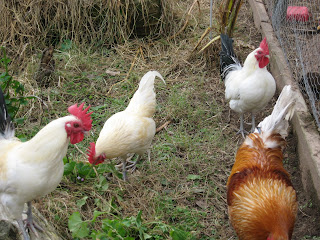 See how well the cats blend into the surroundings...if my husband had not seen that picture, he would have never know. Good news for each of you who have read my cat story! You each have been awarded a cat. I just need your mailing address.The next giveaway I have is roosters...pick a color. My sister allows her extra roosters to run loose (cats do not bother them, in fact they eat together). Marcy lets her hens set when they will and they are as fertile as the cats!