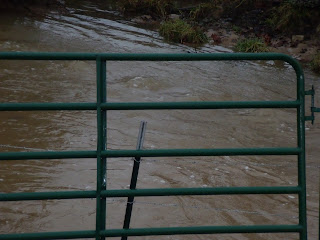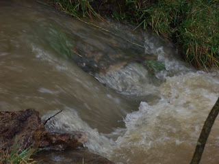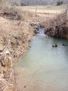This is a "dry" creek that carries our run off from the new pond. Although the pond is forty years old, it was the last one built by Daddy and will forever be called the "new pond". We do fish in this deep hole and have caught perch that washed into this spot.