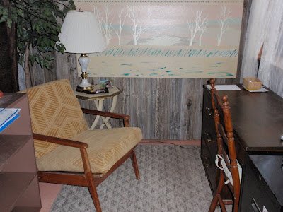 Oops, I think I bought the file cabinet new about twenty years ago. The chair under the desk is Mom's and the desk is another yard sale find.