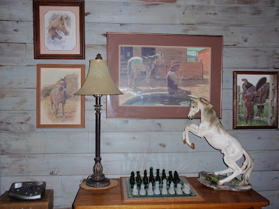 Although Bev did not give me homework this weekend, I have been trying to keep this rock rollin'. I moved out a big craft table I had made and placed it on the dreaming porch. I brought in my Grandpa's old table he had made for my "art" table.
