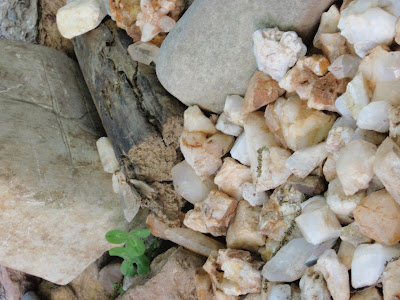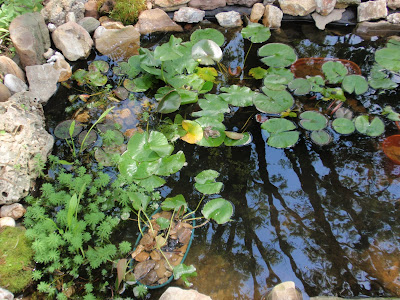 When emptying this pond of broken pot growth, I finally just rolled all the water lilies into a large circle, like rolling a carpet and had to have help dragging them out. I have tried to break the lily tubers with my hands and am now suffering with carpal tunnel. I have picked broken clay pot pieces out without slicing any body parts open and have sworn off clay pots in water! I have rocked my toes and fingers a few times 'cause you know me, most time I was barefooted.