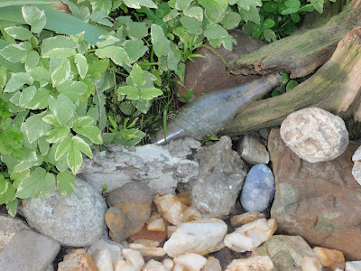 I have a resident that seems quite happy with his new pad! Also added small perch today to make it a natural garden.