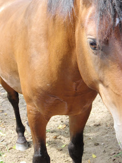 Have to agree with Rudee on the red thingy - yikes! Otherwise quite lovely - just makes me want to pet, pet, pet.HEY! Did I tell you I signed the girls up for a horseback ride on the beach when we go on vacation? They are so excited! :D