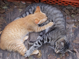Oh my...just look at that kitten nursing!!! Some mommas just don't mind, do they???