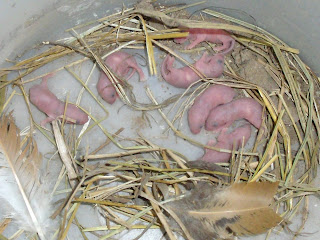 oh my gosh...the last time I saw a nestful of baby mice was 1944 in an old farm house in Yakima, WA. We had just moved from Detroit, MI...funny that I was thinking about those mice just the other day...how odd is that! My mother found them in a drawer...I begged to keep them, but she shooed me away and I shudder to imagine the end of the story....dare I asked what happened to these? Is Orange's tummy full?