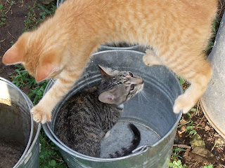 Double Trouble.lol!Your kitty capers are so cute. Whenever I look at that boney grey shelf sitter kitty you sent me, I think of you, Gail :)~Lisa