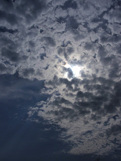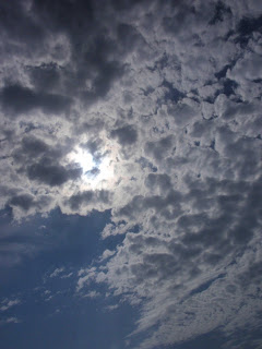 Looking at the sun through the clouds like that, it looks like the moon at night peeking through the cloud cover.It doesn't look like it's daytime, does it? Nature sure can fool you. I bet you were on your dirt road when you took these pictures, right?