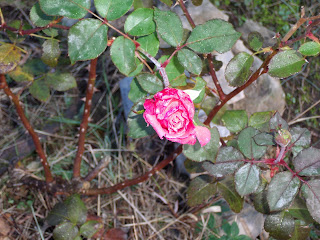 We have a few roses that somehow have survived too. Your roses and the pear are pretty. A blog friend of mine in WA only had one pear all season and she made a salad with it on Friday. My grandma used to make pear preserves when I was a kid. My mama used to save the last couple of roses and dry them to keep thru the winter.