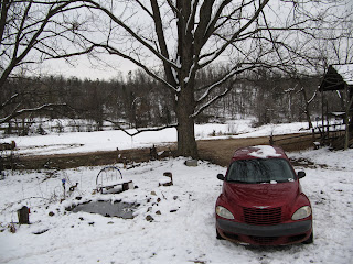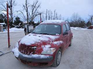 Looks so cold! But you're free! And your red car looks so pretty on contrast to the snow. :)