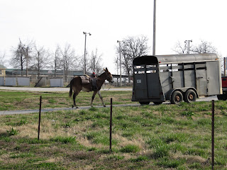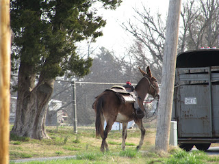 Seems a little dangerous. But the mule is quite handsome and looks like he can keep up!