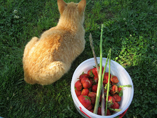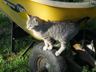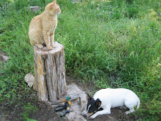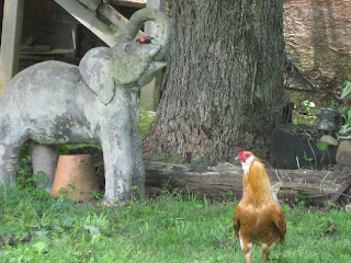 The yard crew (Hubby and Beverly) was mowing yesterday. East of the house, near the old tractor tire water garden, a copperhead snake was spotted but escaped. This guy is poison and we do not really like having one this close to the house. Heck, we don't like having them at all!
