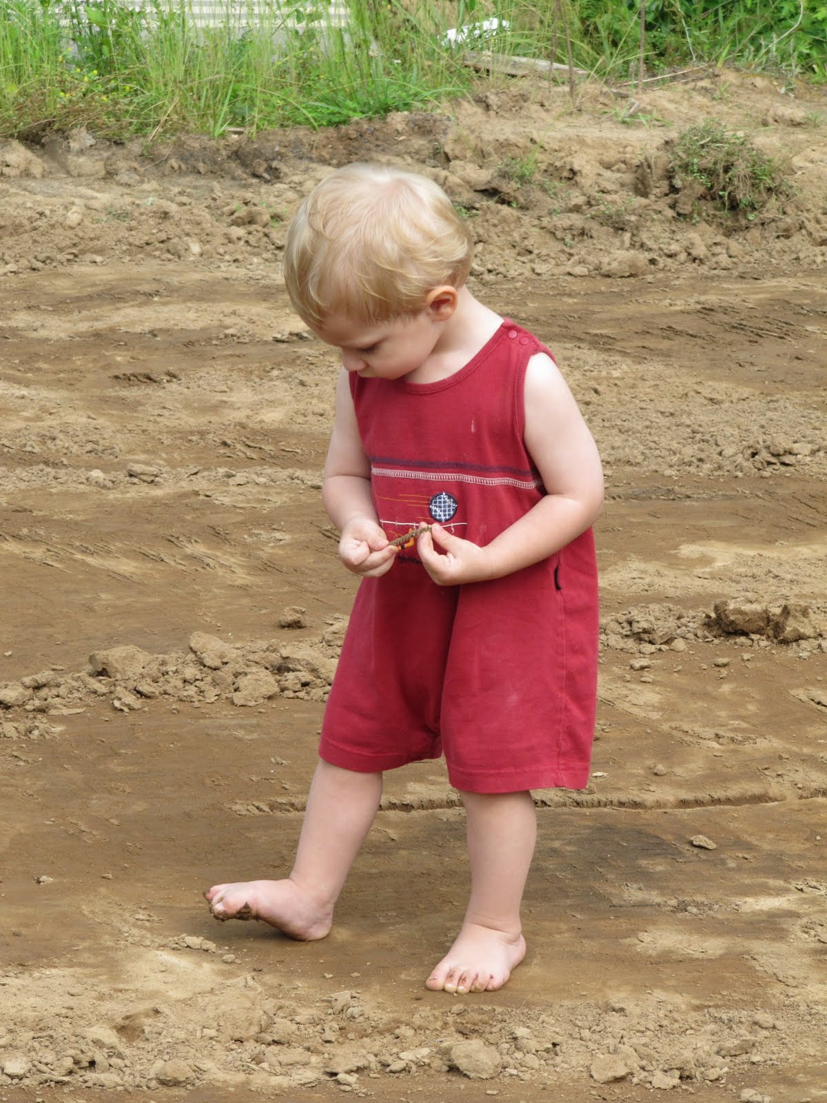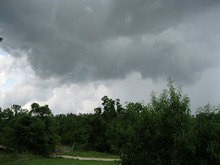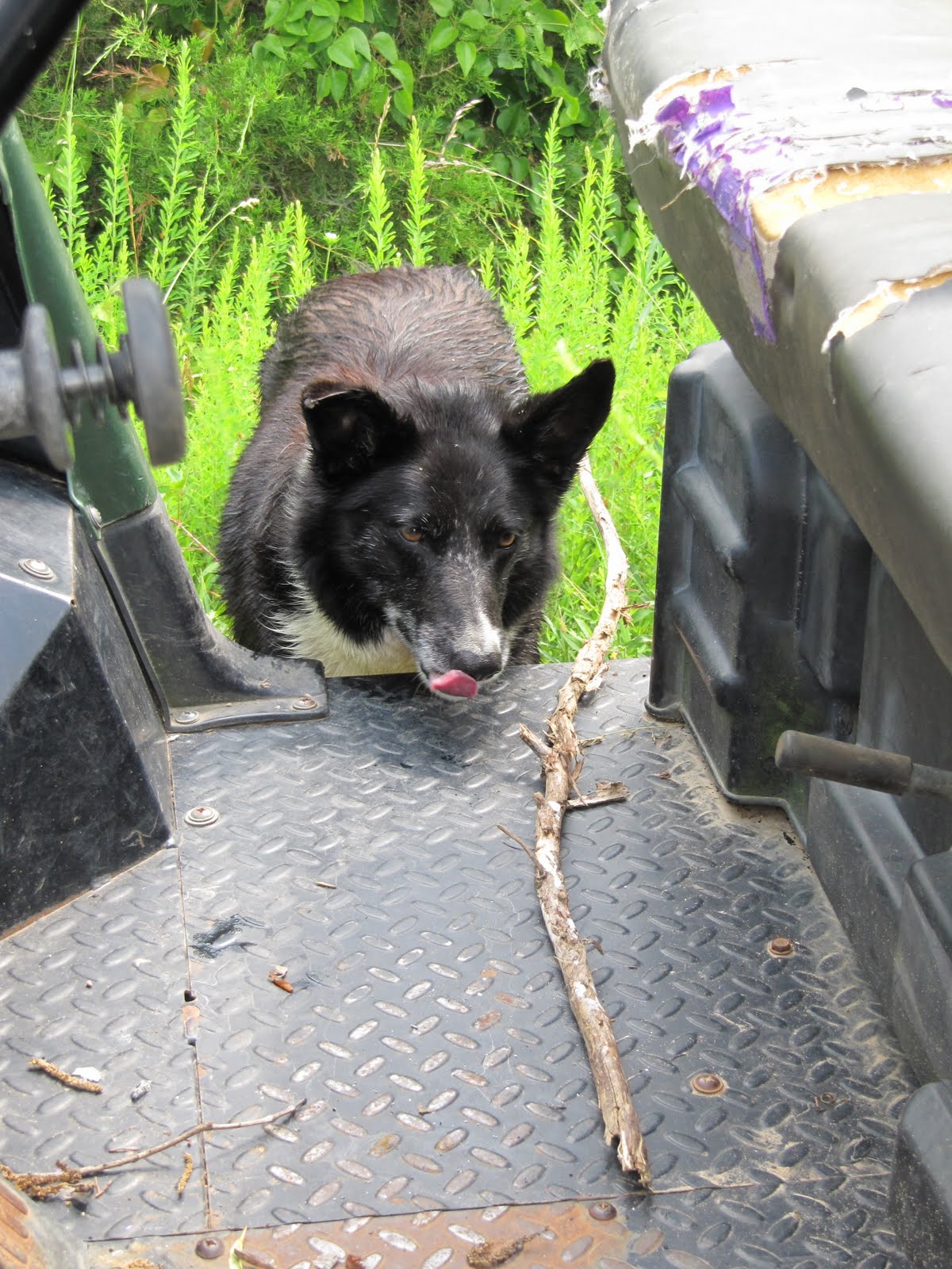 Now I have two, no, three big piles full of plantain, violets, blackberry rose and elderberries topped with sticks, dead pecans and limbs and debris from the old tractor tire. It is over ninty degrees and the humidity is 76%. I am not sweating like a horse, I am lathered.