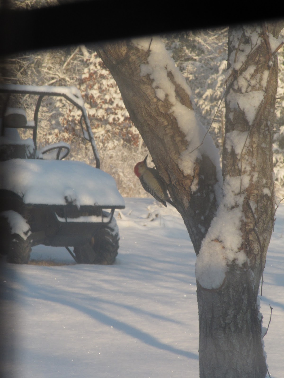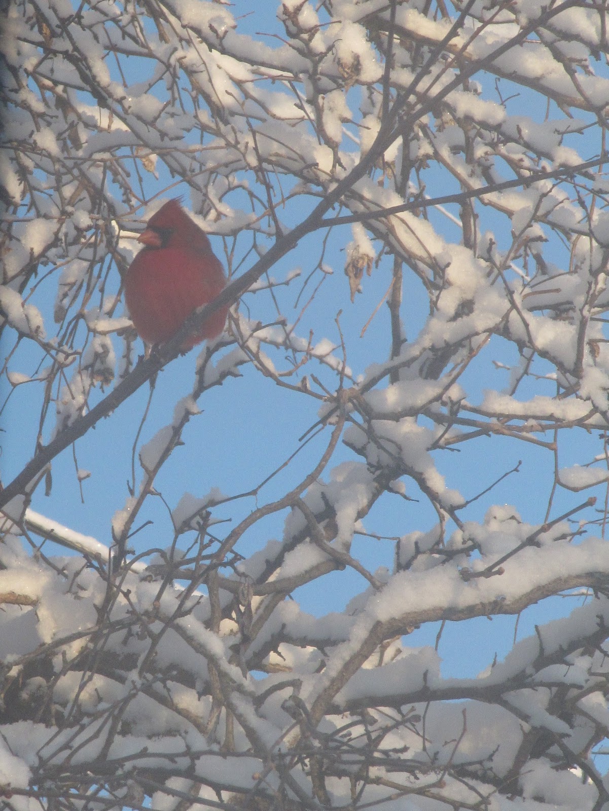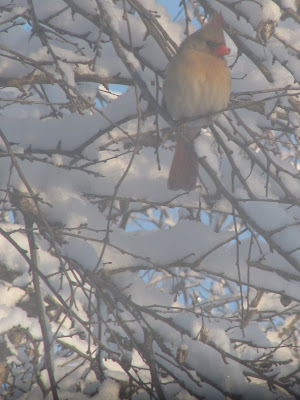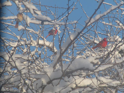 I have kinda of lawn island which holds three Crepe Myrtles. I glanced out the other day and they were filled with Cardinals. The little 'trees' looked like they were festively decorated. Do ya think they all would hold their pose while I got a camera???? It was a sight to behold against the backdrop of the pines and snow. Dang...another Kodak moment squashed!!!