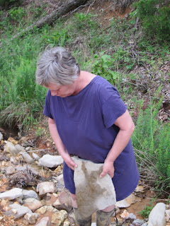 and I should know better!! Marcy always has her camera...and she caught me on the rock hunt in my fashionable night gown and my camo rubber boots.