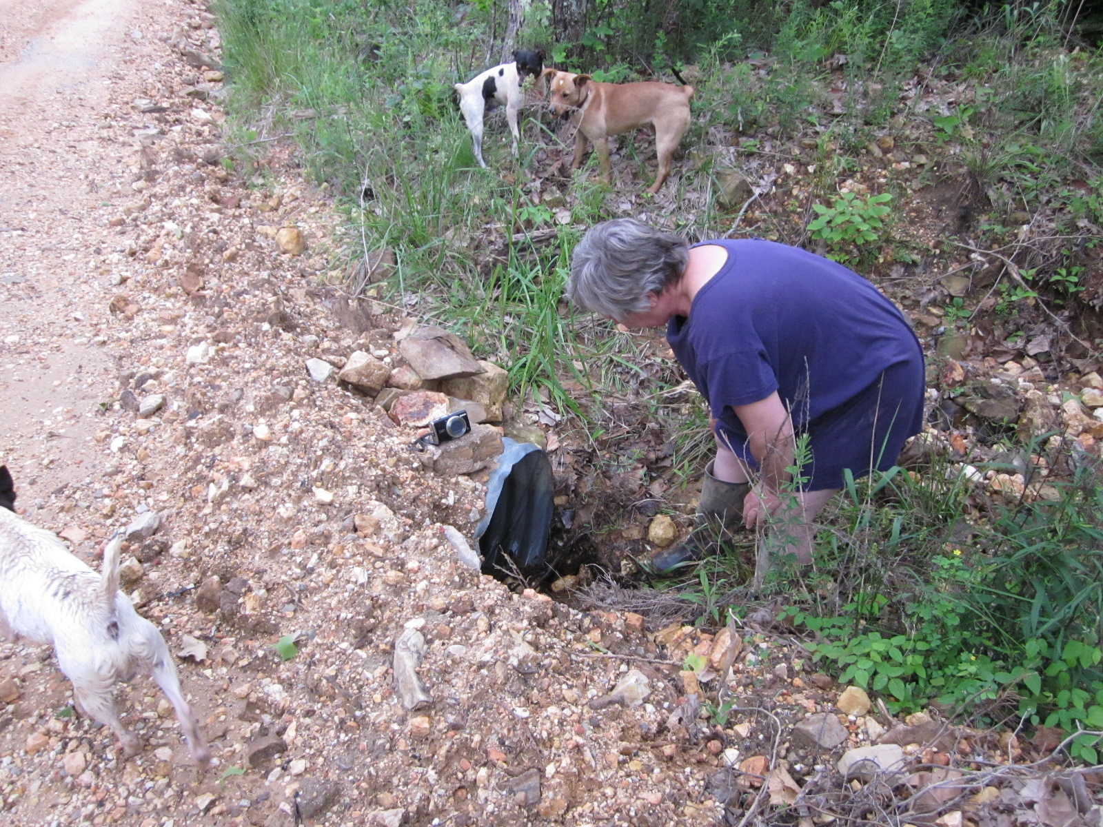 Scoping out the rocks I want as hubby drives...he still can't lift from his heart surgery but doc said he could drive so he drives the mule, the tractor, the lawnmower and the truck. Stubborn!