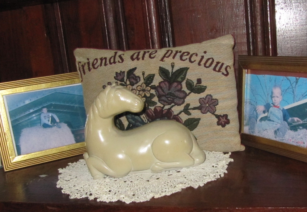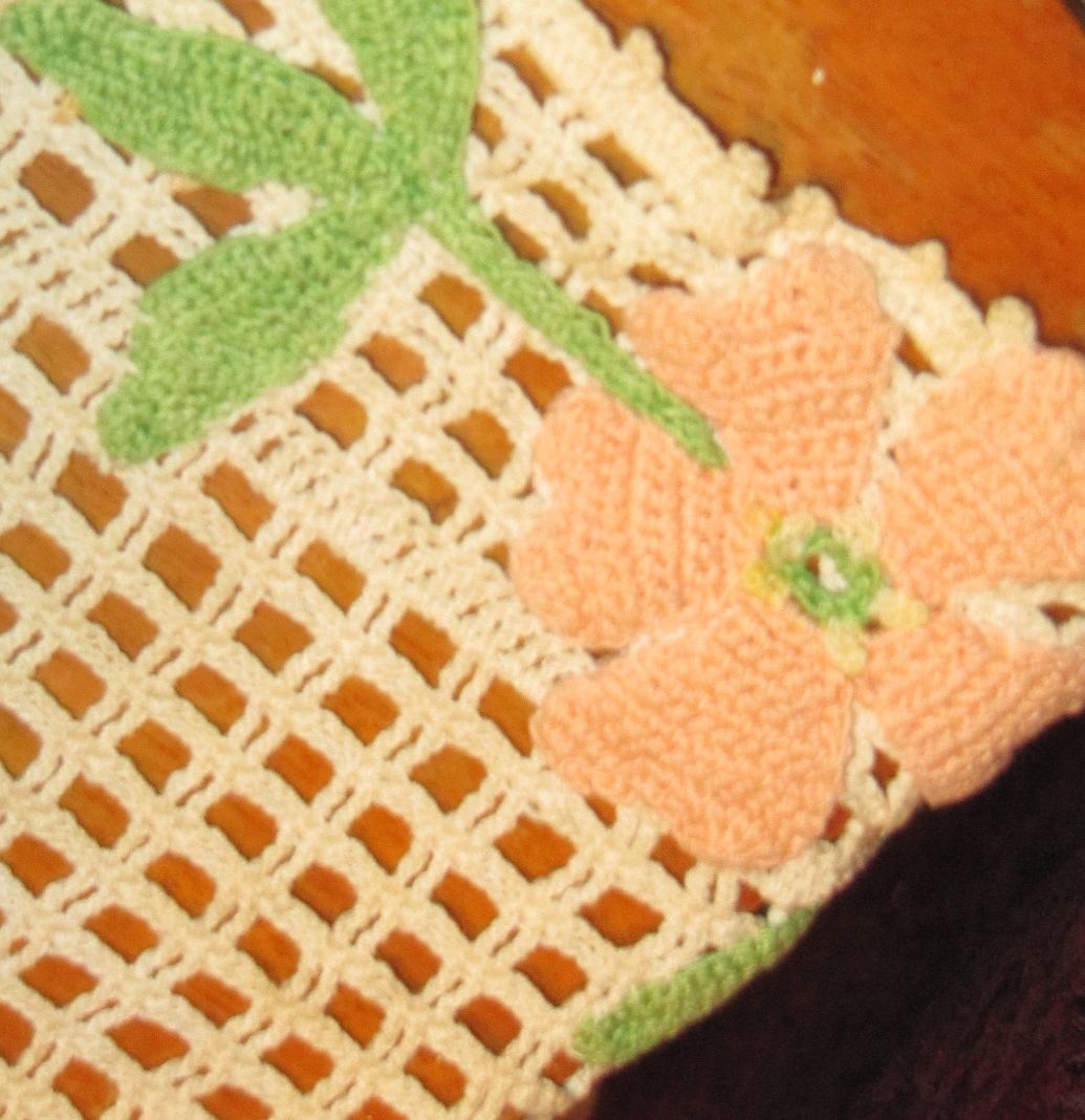 Doilies help protect the furniture, too. I had lots of doilies in my house. I liked the way they looked against the dark wood.