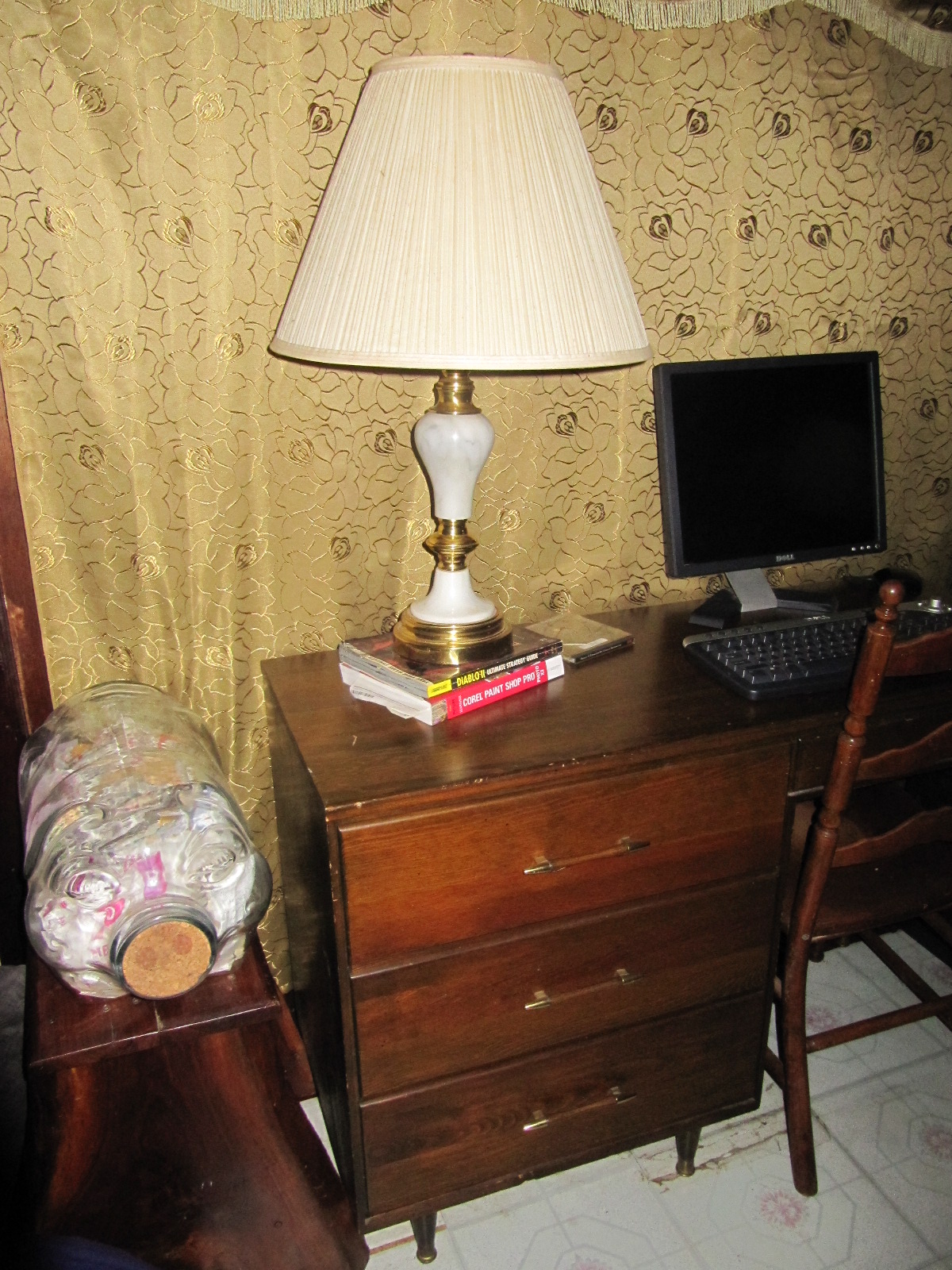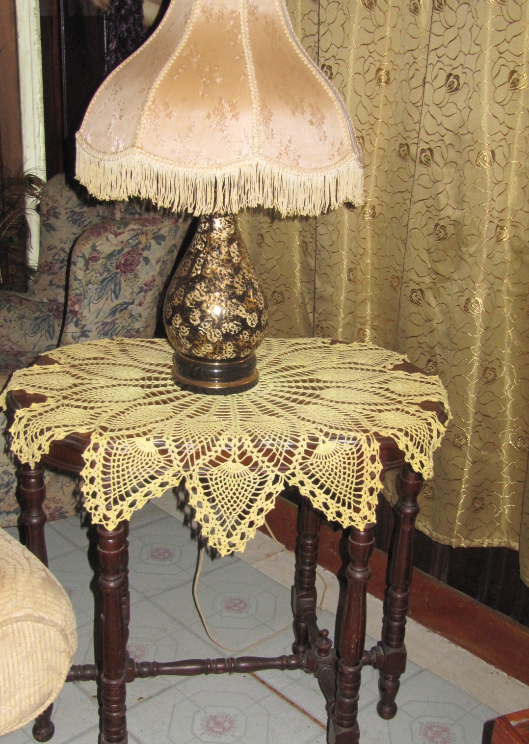 It was fun to look in your boudoir and to see all your treasures. There's still an awful lot of stuff there, but it is getting a lot better. I wish I could rid you of your love of doilies. They seem so unnecessary. I'm glad Irene is still present with all her candles. You're doing a great job at sorting it all out. Keep at it.