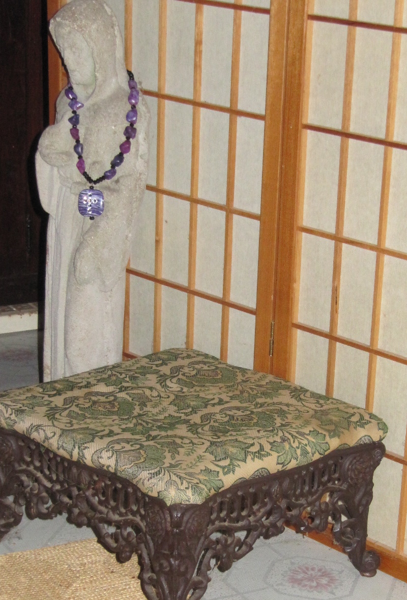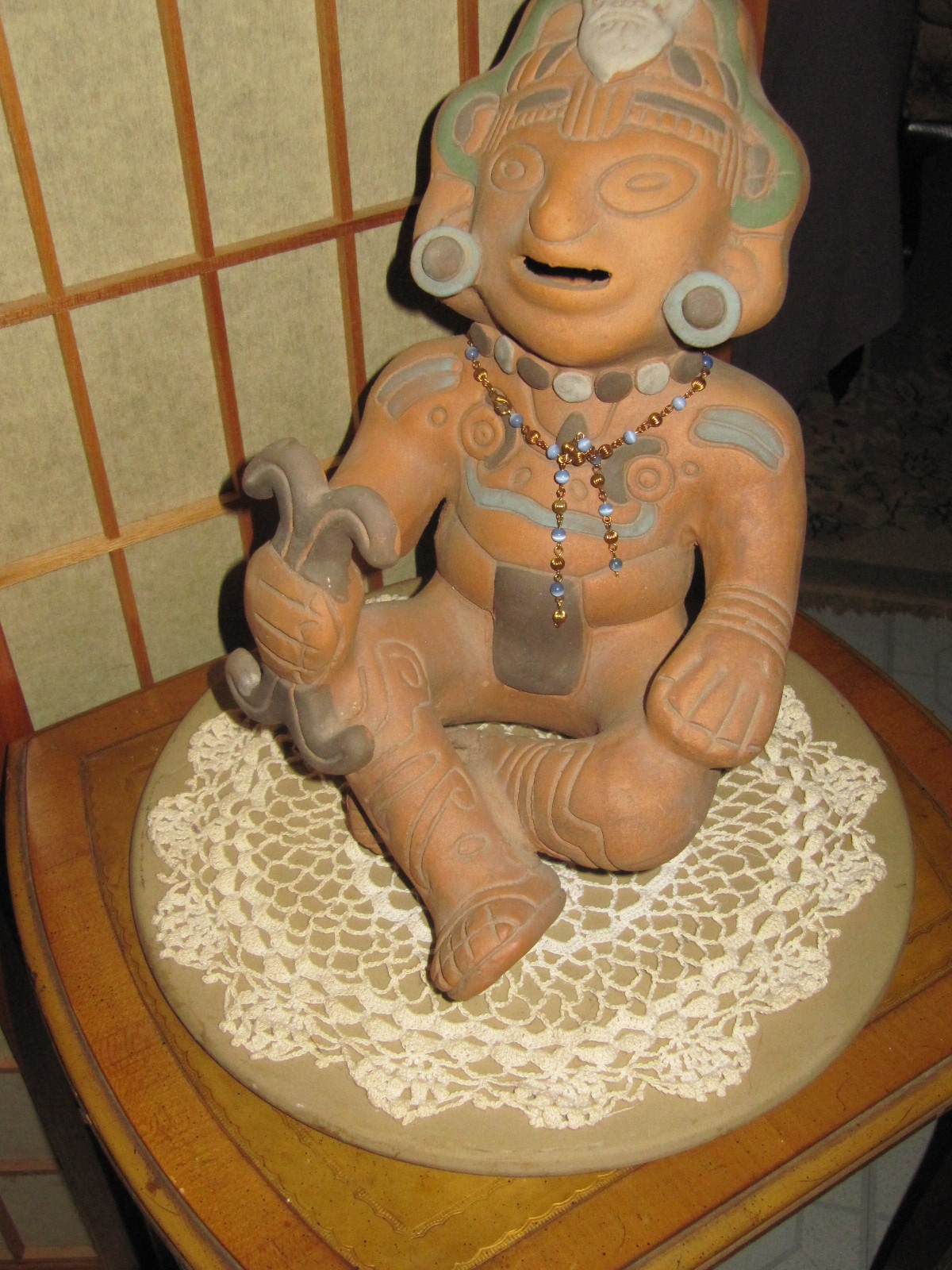 Thank you for the tour of your you place. It is lovely to see where you rest and relax, where you keep your families endeavors close at hand. I think my favorite is the cross legged ethnic on a doily. I think you have a wonderful sense of self and I am enriched by seeing your treasures. Great insight into Gail and the eclectic person you are. No wonder I like you. Linda