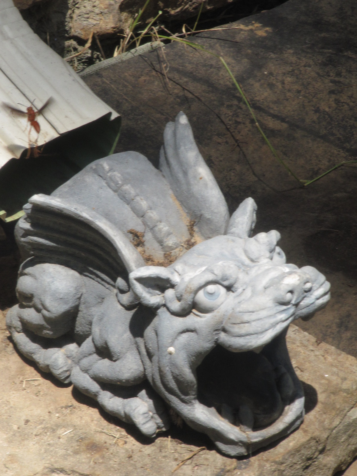 Notice the lip of the gargoyle.