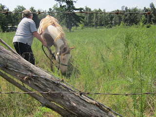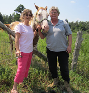 Little Grandma Anna and Big Nana with Johnny, Jake is the photographer and the horse was given to him. This time last year, Johnny was a rack of bones. He's in better shape this summer and since no one would buy him, the neighbor gave him to Jake.