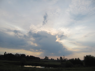 softly rumbled as it begrudingly dropped bits of rain. I watched, driving to work. I wanted rain but was left with the sky...the beauty melted my sourness.