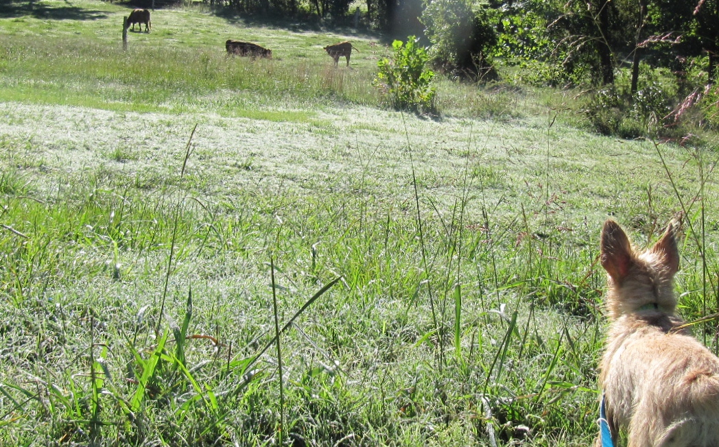 Lizzie is so tiny, I can see her size now with her toy. i bet those big cows were scary from her height.