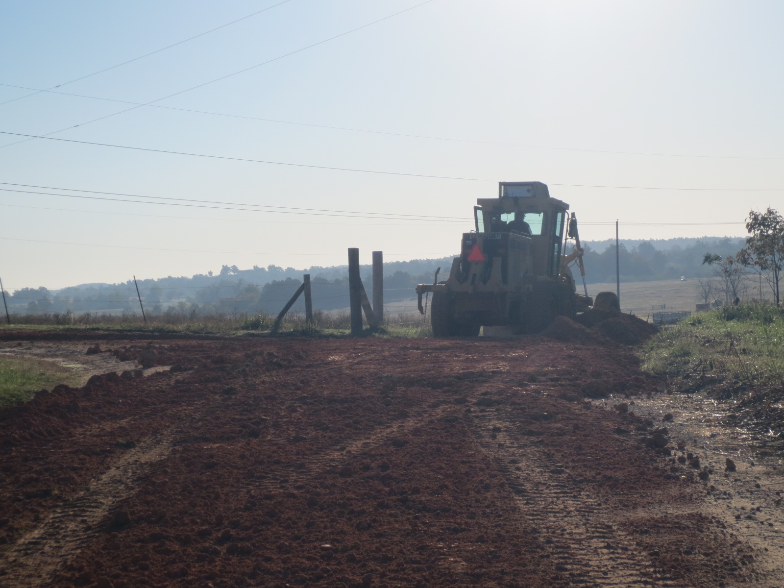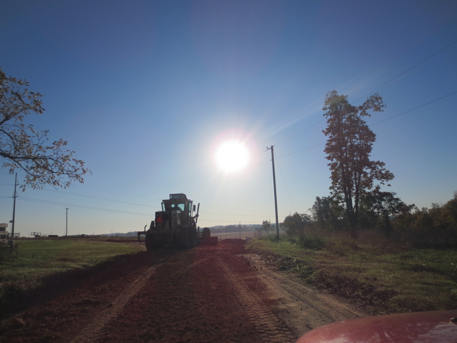 Would you send the graders our way please? Our farm road needs it! Your road looks good. I know what you mean about the red clay. Packs hard almost as good as concrete.
