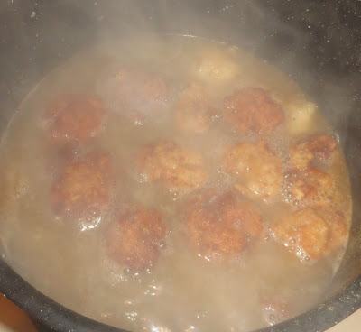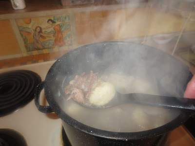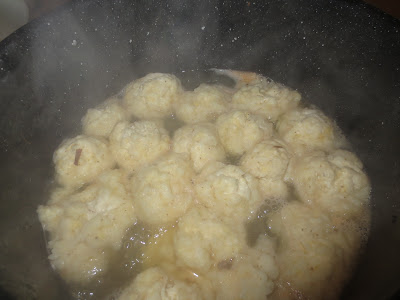 Here are my pitifully pale dumplings cooking in my deer broth.