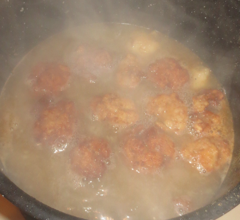 Then I threw my fried Texas Dumplings in, kinda added some color to the pot.