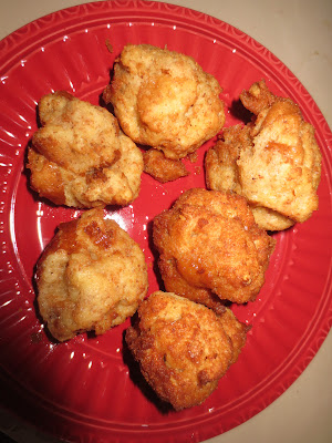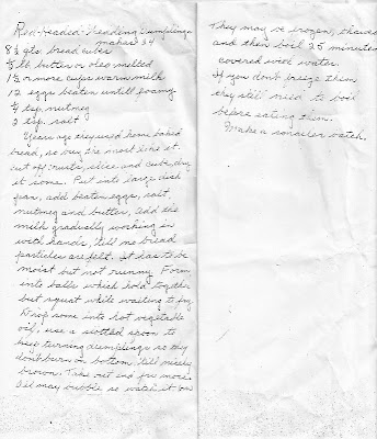 As you can see, they have earned their name. This recipe above for a big batch so I just cut up some bread, added an egg, a little milk, a dash of salt and the secret ingredient...NUTMEG.