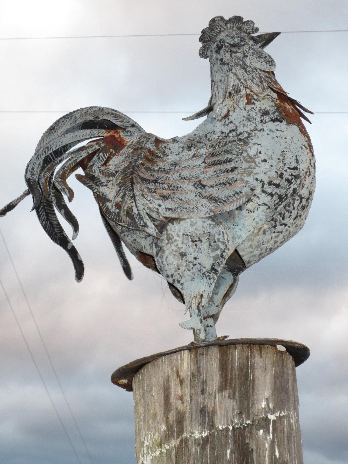 Tail feathers on a metal rooster