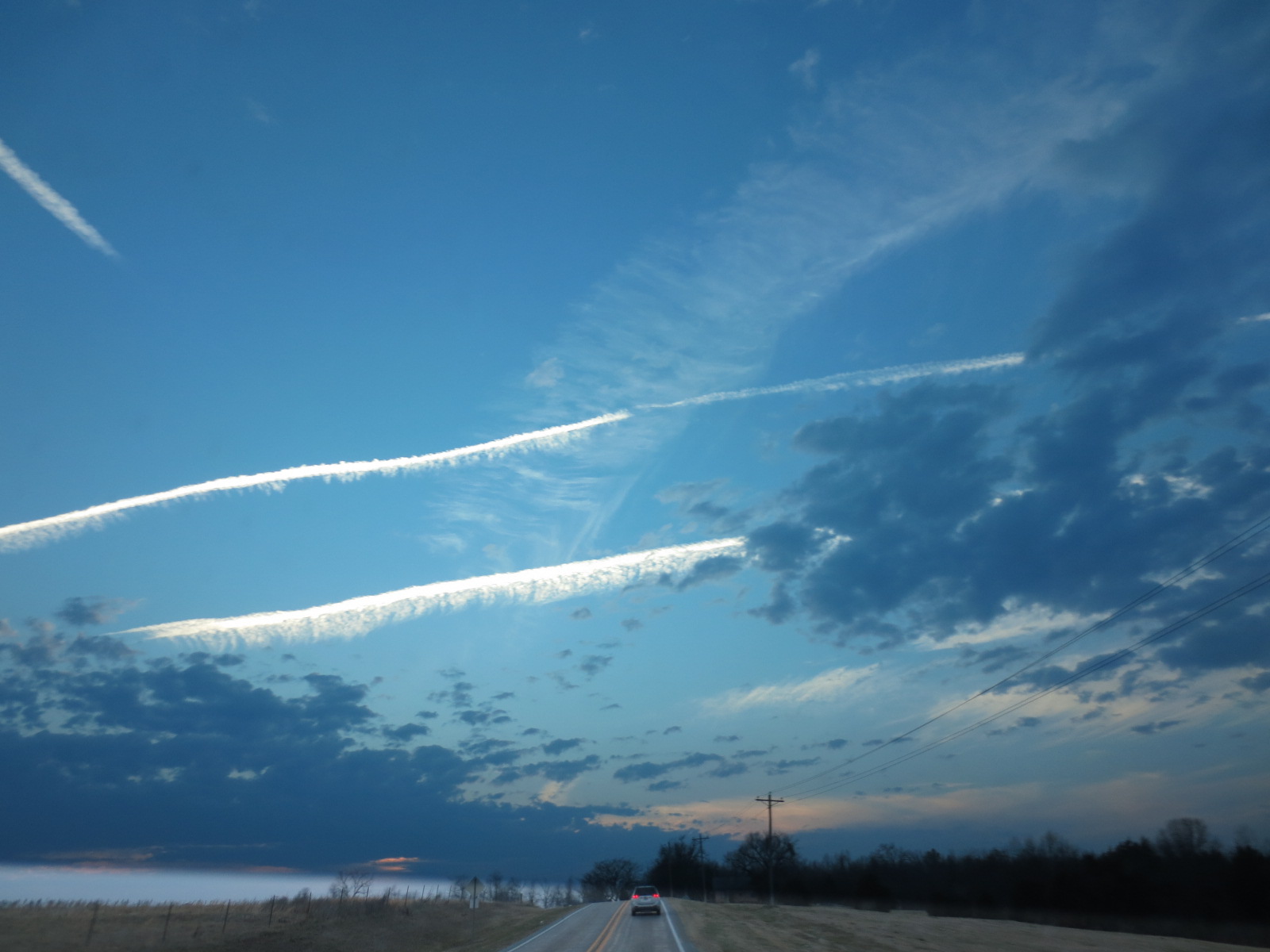 OMG Look at all the Chemtrails in the picture. Good shot of them. Yesterday, here, too, the deep blue sky became criss-crossed with chemtrails in mid afternoon and I get sick at heart when I see them but it's every day.