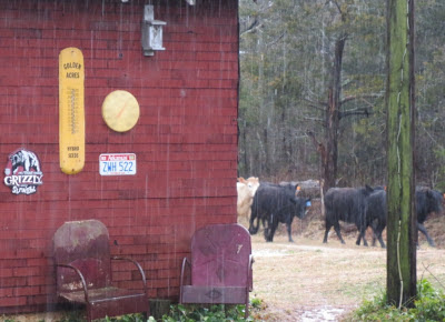 WOW, the rain was really coming down, Eh. Nice looking cattle - wet job for hubby, dogs and by the looks of that rain, good thing you didn't get it wet. Gail, you should invest in all weather camera, cause you're out in all weather, right! Have a great day.