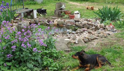 The dogs are pleased with their private bar and swimming pool....and I still have buckets of rocks! Not just plain rocks but rocks from years of collected rocks with something special about every one.