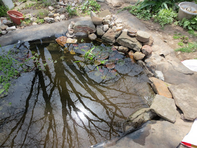 The pond is looking great with all your stone collections. How deep is the pond? Bet your feet would love dangling in the pond on one of your drippy hot days. Ever tried it?