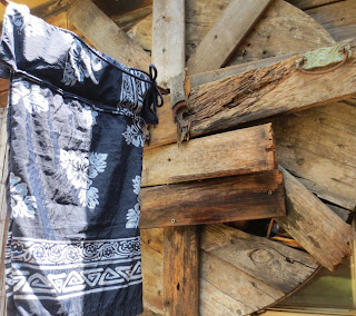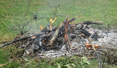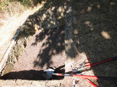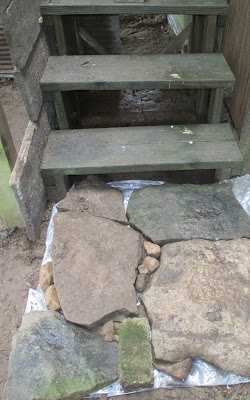 I used a pick ax today to dig and lay a row of bricks to keep siding off the ground. May not be the right way but it works and it's level. Three pieces of siding done. Hallelujah! And it only took this old rusty body three hours to figure it out, cut it and get it done. I am working with scraps so don't expect home and garden. I am proud and when it is painted to blend some may never know especially since this is a seldom seen spot.