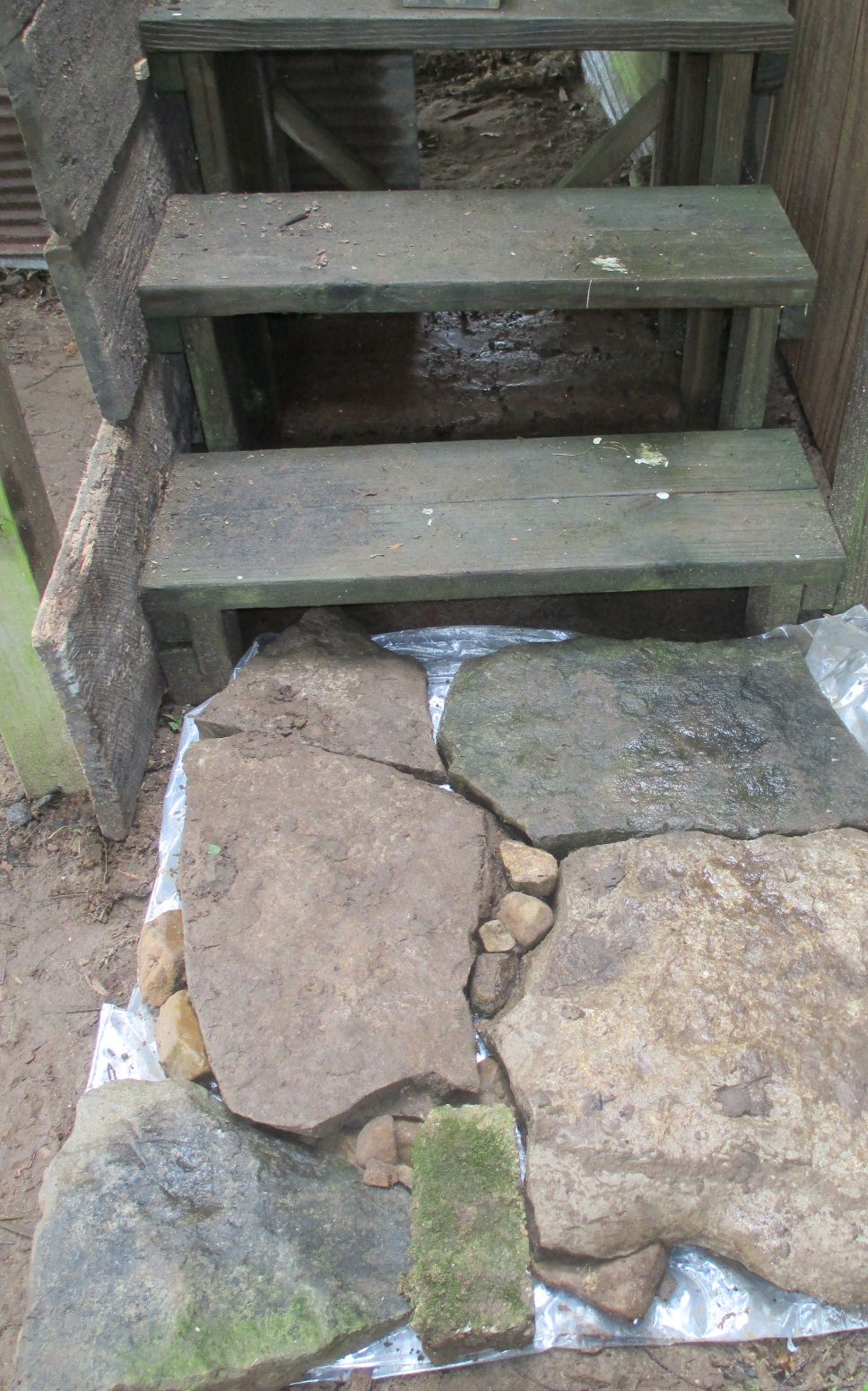 My brilliant plan, an engineering feat, is to have the water run over this huge rock down the natural channels into the re positioned tractor tire which will be buried on a tilt. This will then run into the larger garden and recycle back to the rock. Sound good? Yes. Sound difficult? Yes. Sound impossible? Absolutely not!!!