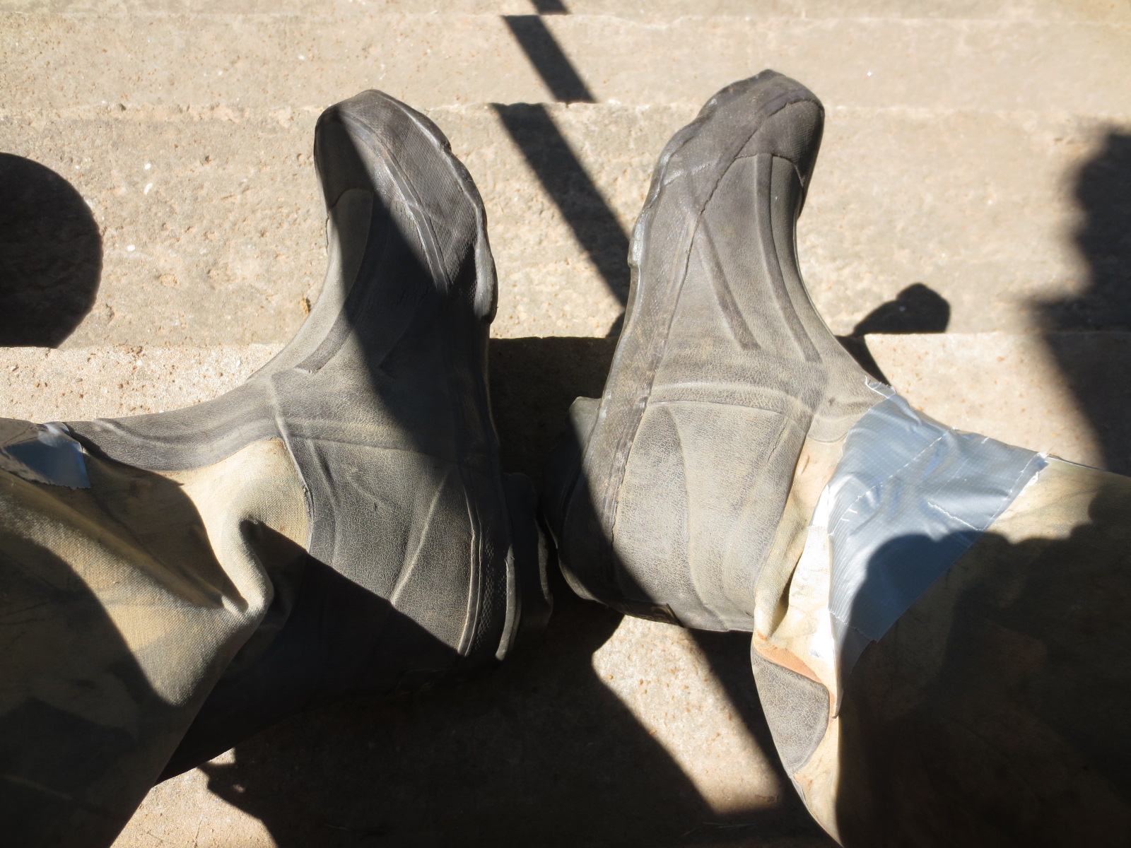I'm a great lover of duct tape and have two rolls of it in the kitchen. I use it for anything at all. I am glad you were able to fix those boots, because they look like they can give you a few more years of service. It is a small flaw in the design, though, that they tear so easily there.