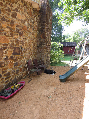 Is that your house made of that lovely stone????? So pretty! Great idea with the sand and another project done! The kids are sure gonna have fun! Reminds me that we used to get some waxed paper from mom and wax the slide down on our swingset when I was young. Made us fly!!!! :)