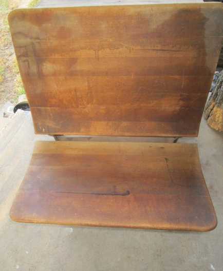 I proceeded to clean at least sixty years of dust and grime from this wonderful piece. My plan was to set it in my entry hall as a handy spot to sit while taking off my boots. Seat folds up or down, small foot print for a beautiful piece of history. Lemon oil and iron cleaner and a filthy rag later I stepped off the porch backwards...I think.