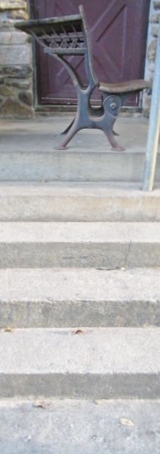 The desk was unharmed and silently sat where I had placed it...I think it was laughing. My right forearm hit the first CONCRETE step, my hip hit the third. Hurting like crazy I decided not to finish cleaning. I did not tell Hubby til I healed for fear of him bird-dogging me where ever I went. Good thing is I have no broken bones. The bruises are fading but the desk still sets.
