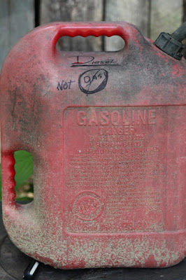 We've had memory glitches lately (too bad we can't have our memory upgraded like computers). Hubby was panicking because he couldn't remember if he poured gas or diesel into the tractor. Both are red jugs. The diesel has a D on it but Hubby couldn't remember which jug he had used!