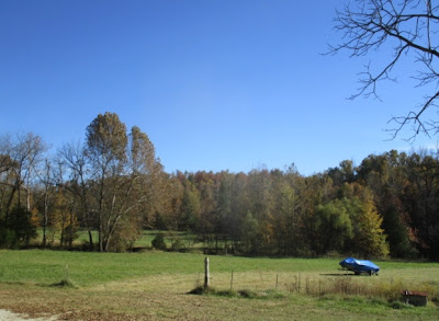 The boat has been tarped and winterized. It's in the pasture because the barn will be filled with other working machines and the boat shed has been reassigned as the truck garage for winter.