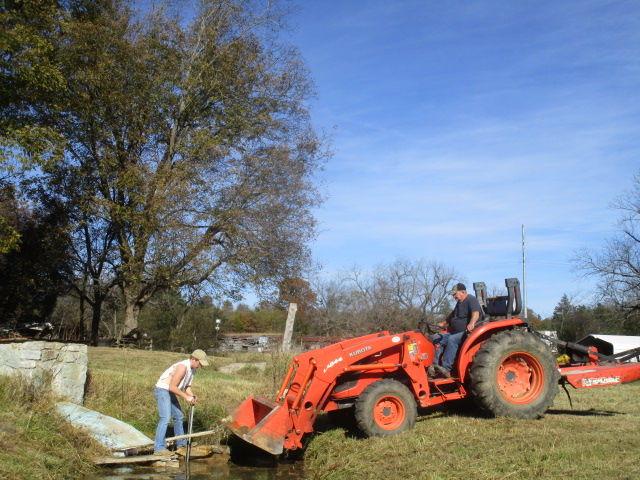 In the past a spring cleaning day was an event attended by all members of the family. Mom cooked while we all got down and dirty in the spring branch, pulling cress, cutting grass, moving the sand on down the stream while capturing crawdads for fishing in the evening. Yep, an all day event for six to twelve people is now a four hour job for three. I ran the camera and did some straw bossing, so make that two.