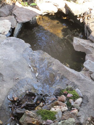 The water gardens were deleafed and topped off. The Koi in this and the perch in my other garden will survive the freezing temperatures just fine. I place a board or small post in the ponds to keep an air hole for the ammonia to escape. It also makes it easier to crack the ice without harming the fish. I'm sure there are more leafs today. I will make my rounds with a net and remove as many as I can. The leafs containing tannin will make the water brown and my Koi do not thrive in that.