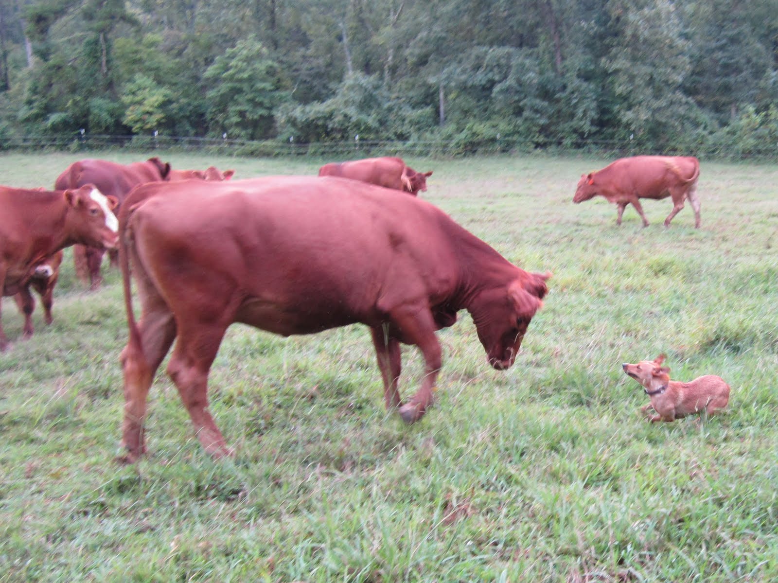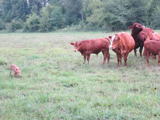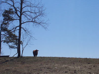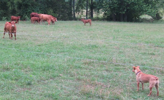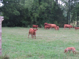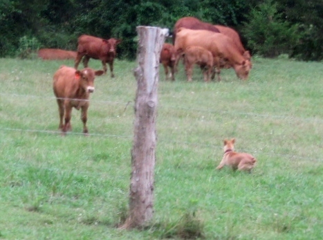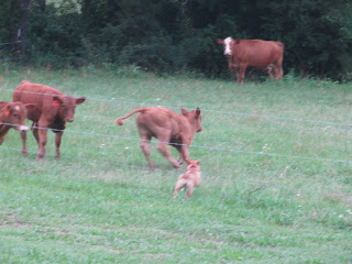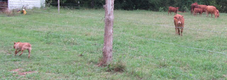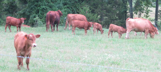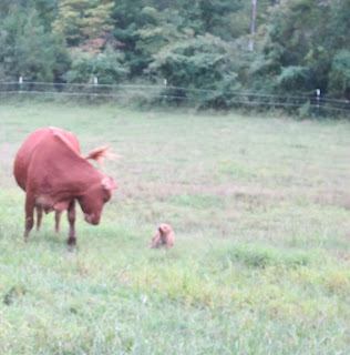 As I drove out to work one morning, our cows greeted me by the neighbors' field. I sat for a moment in the car, thinking how I would herd them to the valley. They began to run...away from the farm. I remembered how hubby calls them and I tried my best hubby holler. My favorite yellow cow threw up her head, turned the herd and almost beat me back down to the farm.