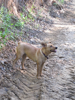 Too hot to walk in the middle of Saturday, I waited til it was less hot. A few dogs joined me and we made a circle through woods and fields and back home again.