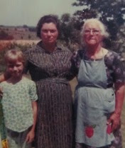 This was taken on a July weekend closest to Granny's birthday, the fifth. We always had a family gathering to celebrate. This picture is at the top farm where I grew up in a three generational family. The pond and the orchard behind us no longer exist. (Eminent Domain is such a dirty word.)