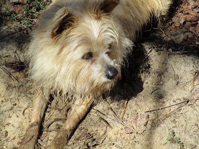 Poor Lizzy repeatedly did this while we were gone. This earned her a place of honor in the outside pack. She joined the nightly raids chasing the scary critters out of the valley, joined searches with the strange smell patrol and had even joined in with the snake patrol squad. All the time she blended right in with her wonderful scent.